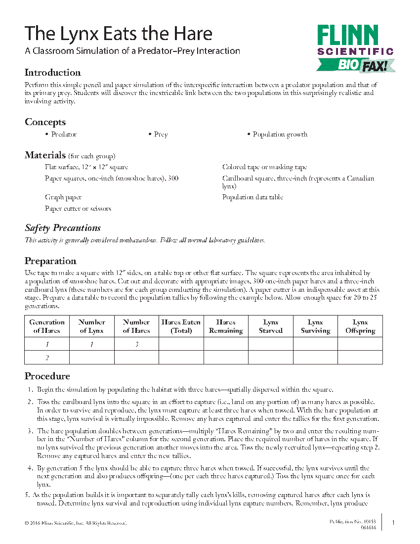 Here is all you have to to learn about predator prey lab the lynx and hare answers But even when humans do not interfere populations will still naturally shift up and down or fluctuate. Individual lynx capture numbers should be tallied on a separate sheet of paper and only totals entered in the table. Be sure to subscribe and check out more videos. Hare and lynx populations the lynx eats the hare flinn scientific both inquiry hare and lynx populations student pdf name date hare and lynx populations predator prey inquiry lesson detailed records list the number course hero predator prey lab the lynx and the hare directions introduction predator prey model 2 canadian lynx and snowshoe hare verba volant scripta manent the lynx eats the hare lab the lynx eats the hare lab generation 1 hares at start of generation 3 lynx at start of generation hares eaten lynx course hero Populations are always changing.